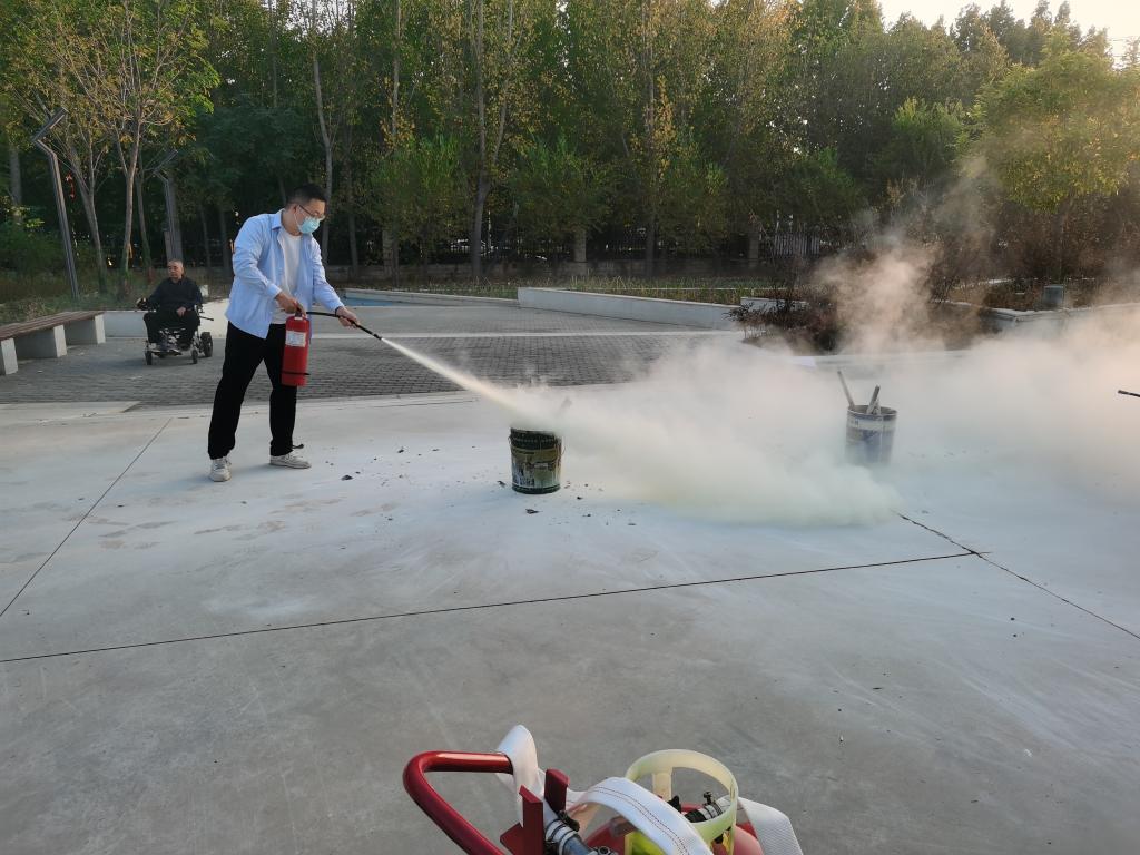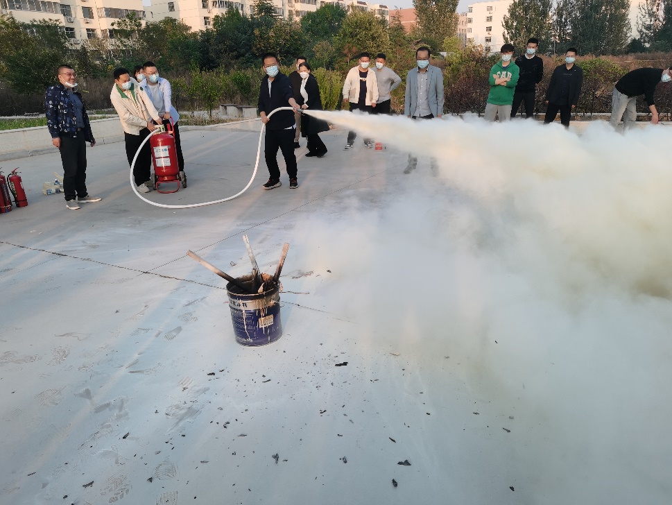 活动现场,实验中心主任贾立锋向师生讲解了干粉灭火器、二氧化碳灭火器、大型干粉灭火器的使用方法,并进行现场演示。随后参加演练的师生依次使用灭火器扑灭桶中火源,熟悉灭火器的使用方法。