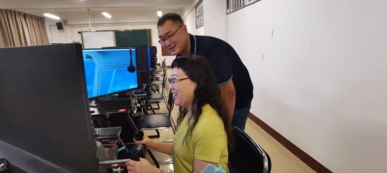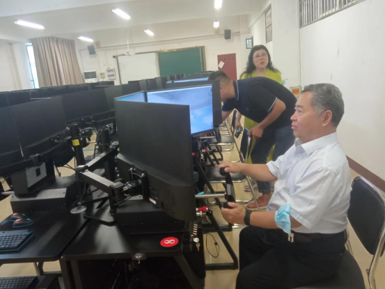 评估组在飞行模拟实训室